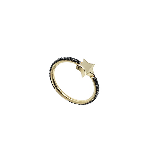 טבעת בנות זהב צהוב 14K לב מרכזי בשיבוץ אלגנטי של זירקונים שחורים OP08150033234