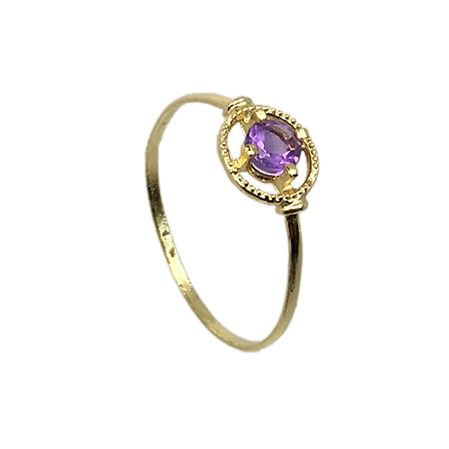 טבעת ילדות ונערות זהב צהוב 14K זירקון סגול OP0514012430