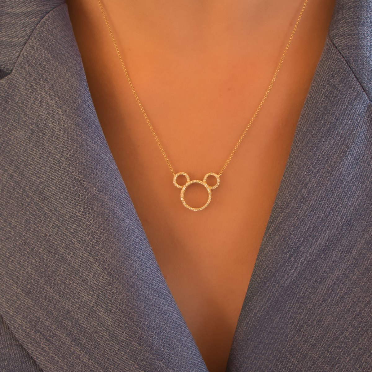 שרשרת ותליון מיקי מאוס זהב 14 קראט 0.15 קראט יהלומים - מחיר מבצע!