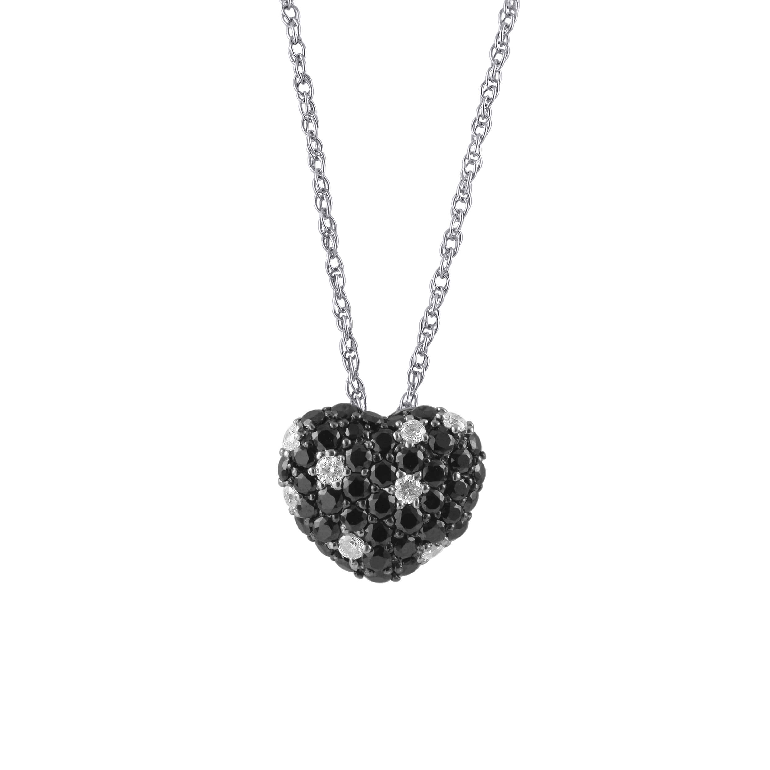 תליון ושרשרת זהב לבן 14 קראט לב משובץ יהלומים