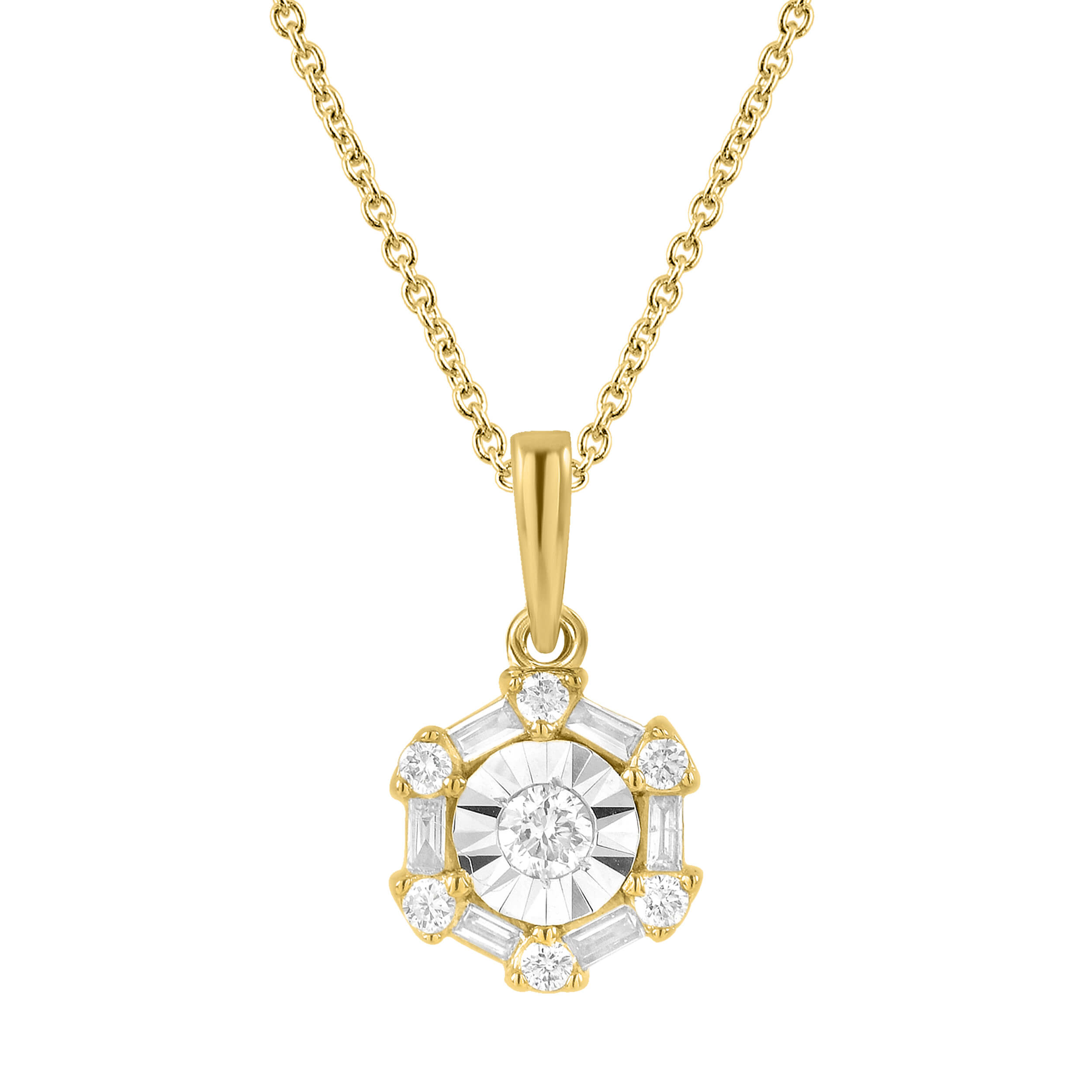 תליון ושרשרת זהב צהוב 14 קראט ירח משובץ יהלומים