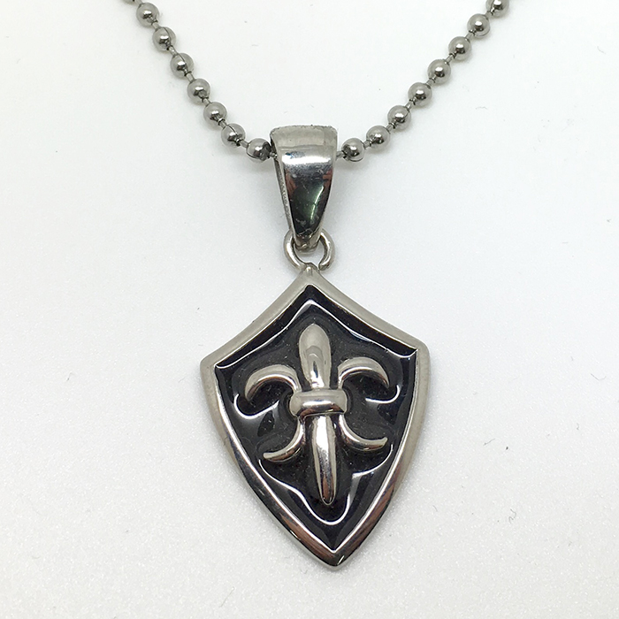 תליון מגן אבירים העשוי מפלדת אל-חלד ציפוי כסף.